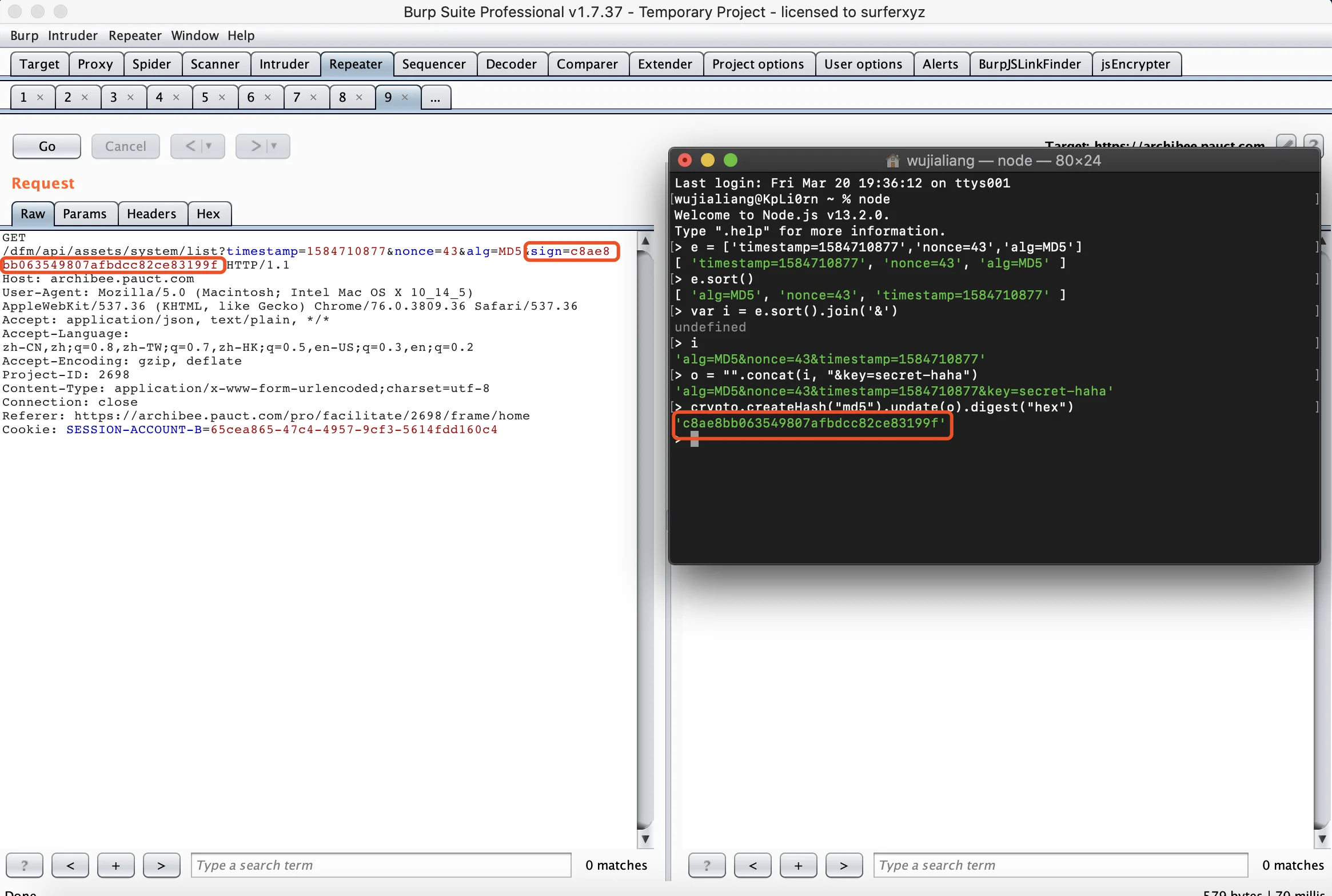 https://www.xxxx.com?idcode=1001×tamp=1584713406然后我们在对前面的参数进行一个排序然后在最后面加上我们的key然后在md5加密就可以了