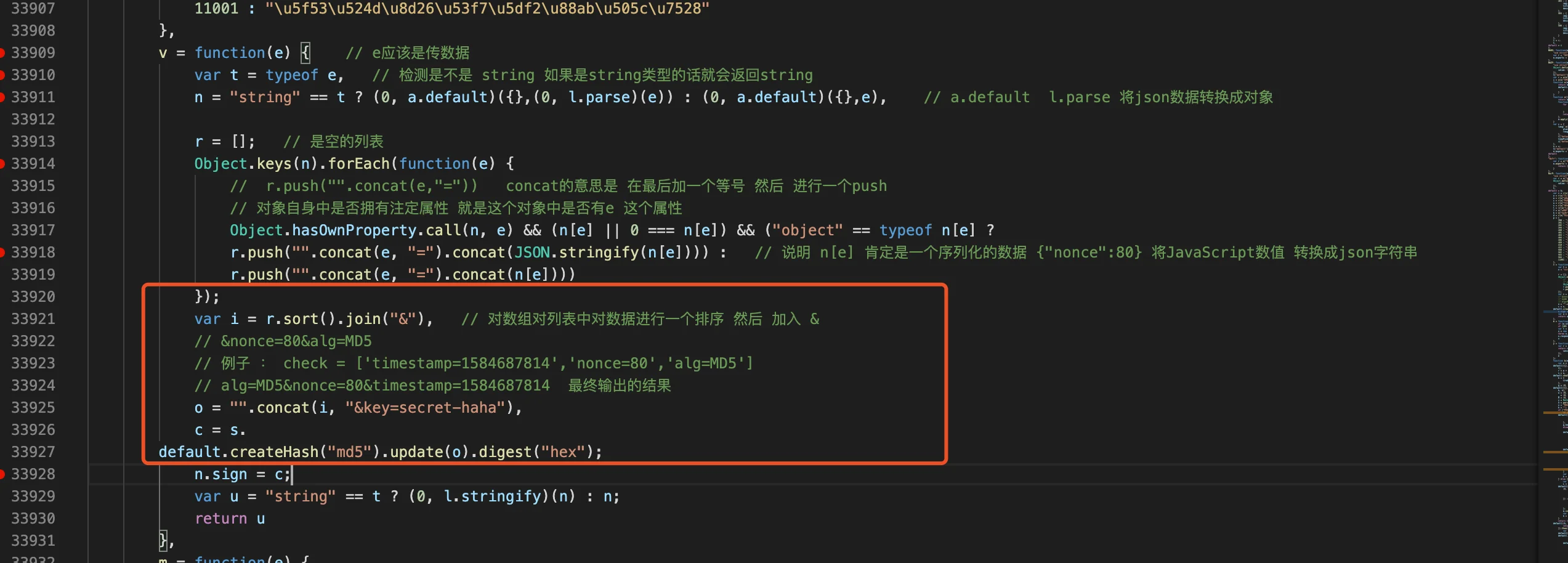 红框部分是关键的代码,这里他将参数进行了一个排序然后加上key